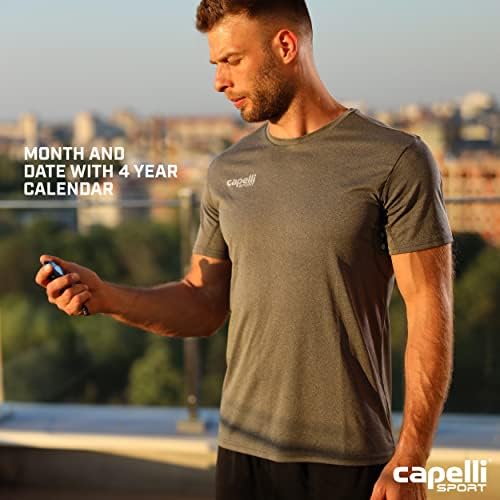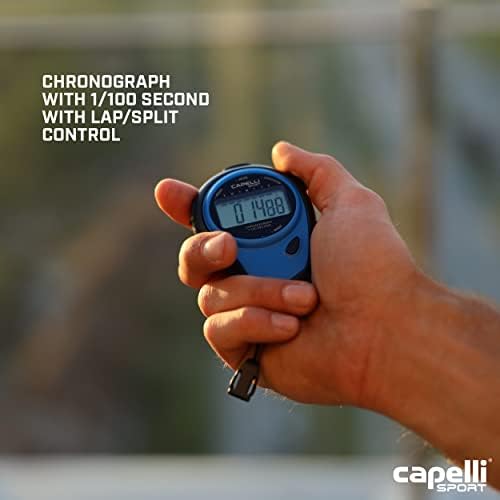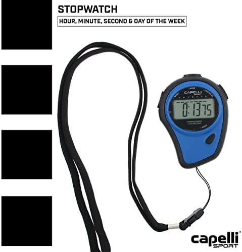 Keep track of time for competitions, training, running laps, swimming, and much more with this Capelli Sport digital stopwatch. Perfect for coaches and referees, this stop clock time your drills, laps, and runs down to 1/100th of a second with lap/split control, and measures the hour, minute, second, and day of the week. These timers can count up to 23 hours, 59 minutes, and 59 seconds, and features a beeping alarm with chime and snooze so that you always have a clear bearing on time whether in the gym or on the field. This sports interval timer features an easy-to-read display screen with large digits, and features an ergonomic design and convenient lanyard so that you can easily take the lap counter with you wherever you need to go.