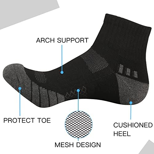 Cushioned & Breathable: Mens dry fit socks have cushion that helps disperse the pressure on the soles of the feet. Cushioned socks are great mens work socks. They have good function of moisture wicking to ensure that your feet stay dry and fresh. Two mesh design on mens quarter socks will strengthen air circulation and keep your feet breathing freely