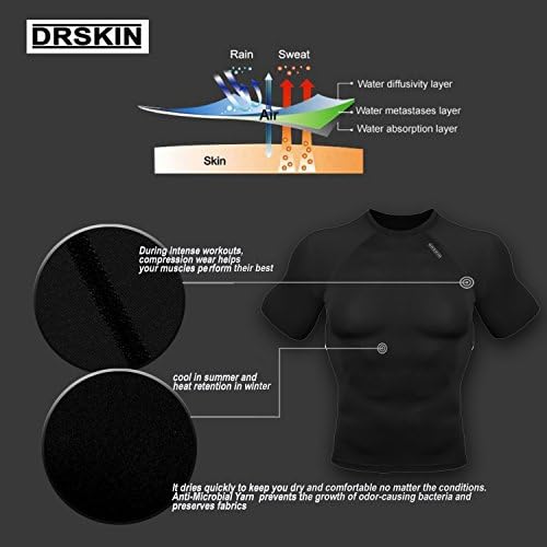 DRSKIN Men’s Compression Cool Dry Sports Short Sleeve Shirt Baselayer T-Shirt Athletic Running Rashguard