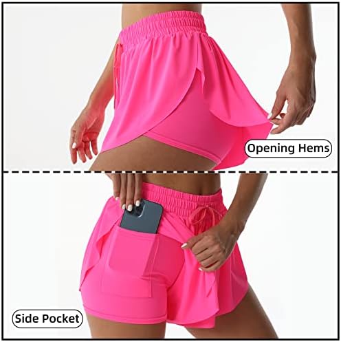Double Layer Design: Elastic inner layer design and openning hems provide greater freedom of movement, let you move freely and comfortably as you run, jump, twist and bend, These athletic workout running flowy butterfly shorts for women have adjustable elastic waistband with drawstring, which perfectly smooth fit around your body.